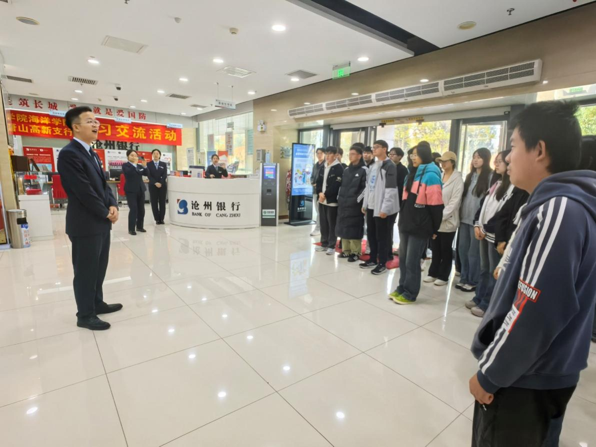 活动中,校企双方进行了座谈交流。沧州银行高新支行有关领导对公司师生的到来表示热烈欢迎,介绍了沧州银行及高新支行的发展历程和主要业务开展情况。公司领导对银行给予的大力支持表示感谢,也介绍了公司发展及专业建设情况。希望双方进一步增进交流与合作,共同为地域经济和社会发展贡献力量。