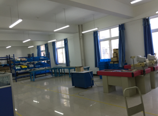 后台电脑调度区——该区域拥有9台电脑、一台条码打印机、两台手持数据采集器,通过系统软件操作,在后台下达货品入库、出库等命令,记录货品信息及变化。