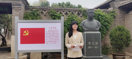 在李大钊故居,深入了解李大钊同志的成长历程,感受革命先辈的优良品质、高尚风范和淳朴家风。党员教师代表王美玉同志作了个人政治理论学习现场分享,表示要向李大钊等优秀共产党人学习,坚定理想信念,立足本职岗位,为助推高校人才培养贡献自身力量。