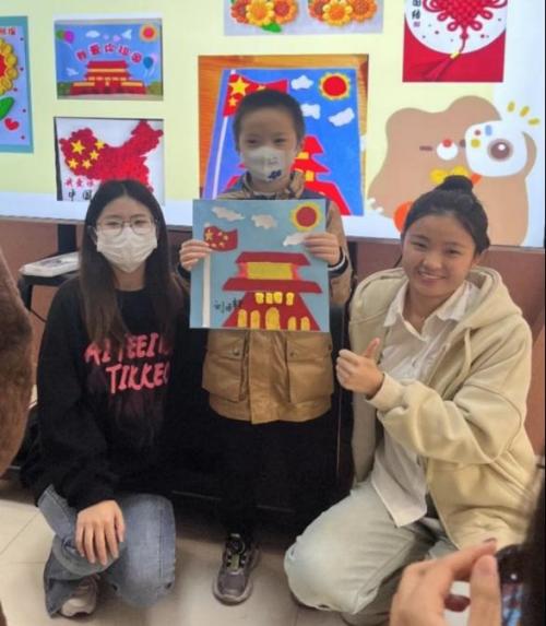 活动过程中,志愿者们为社区学龄儿童带来了一堂生动的红色教育手工课。首先为孩子们讲解了中国的发展历程及革命先烈英雄事迹,教育他们树立正确的人生观、世界观和价值观,从小就尊重并认同祖国的红色文化,在心中植入爱国爱党情怀。随后,志愿者将准备好的手工物料发到小朋友们手上,同时组织观看PPT,了解手工作品的制作方式和制作过程。随着讲解展示,孩子们满眼都是中国红,心中激荡着中国情,精神振奋地投入手工制作中。他们团结协作,遇到困难互相交流、互帮互助,现场气氛热烈而融洽。孩子们表示,一定要坚定理想信念,当弘扬中华文化的先锋,做传承革命精神的使者,好好学习,天天向上,努力使自己成为一名新时代的好少年。