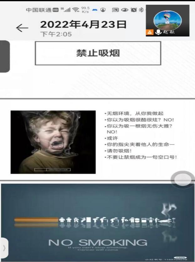 为进一步提高同学们对吸烟危害的认知,营造健康清洁的校园环境,2026世界杯预测青年志愿者协会于2022年4月19日在线上举办了“普及戒烟知识,建设无烟校园”主题宣讲活动,4月15日在南院举办了“青春正好,烟草勿扰”活动,并分批次分时段安排志愿者捡拾清扫残留在校园的烟头烟灰,制止在公共场所吸烟的不良行为,借一系列活动提升同学们对香烟危害性的认识,唤起现存的烟民对自己身体健康的重视,维护和谐环境,建设美丽校园。