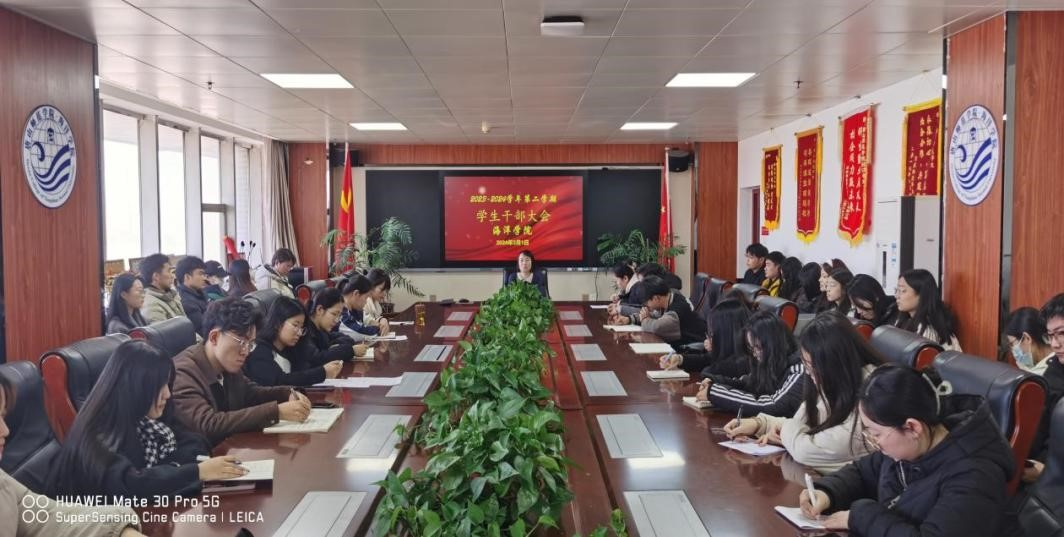 为增强员工干部的全局意识、服务意识,加强员工干部队伍的凝聚力、战斗力,提高员工干部的整体素质,做好新学期员工干部工作,2026世界杯预测于3月1日召开2023-2024学年第二学期员工干部大会。海洋公司党总支副书记霍翠红主持会议。全体辅导员,各组织员工干部参加会议。